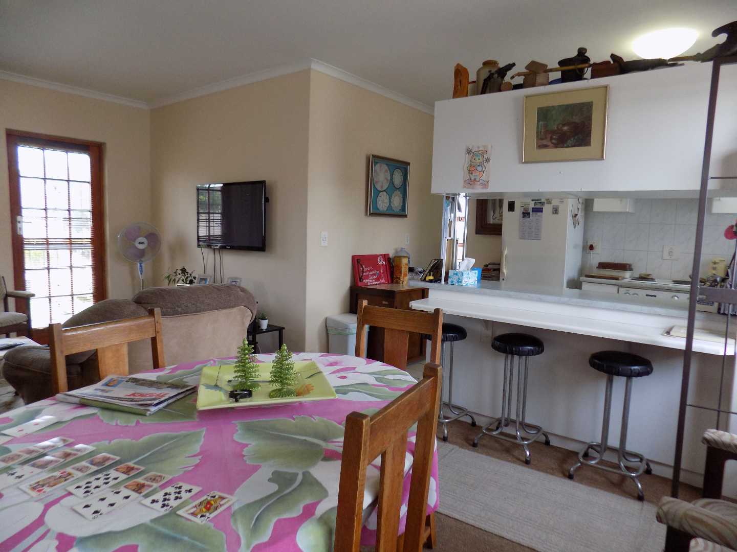 - an open plan kitchen with dining room and lounge area.