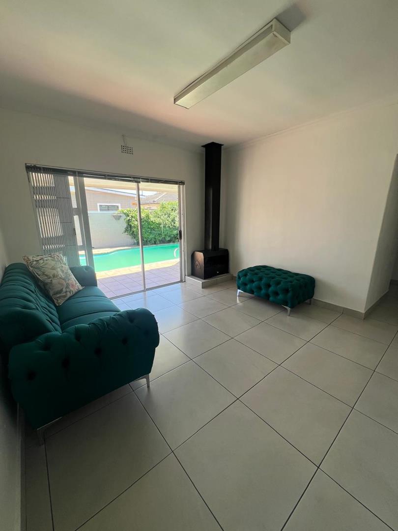 The TV room also features a fireplace and seamlessly opens onto a patio, creating an ideal flow for indoor-outdoor living. Step outside to discover a stunning pool and braai area, perfect for entertaining guests or enjoying tranquil weekends at home.