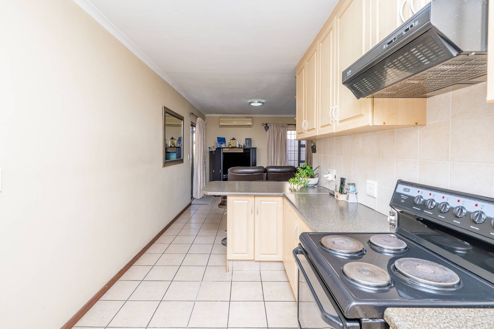 Upon entering, you'll be greeted by a welcoming tiled living and dining area that seamlessly flows into an open-plan kitchen. The air-conditioned space ensures comfort during those warm Brackenfell summers, allowing you to relax and enjoy your favourite activities in a cool environment. The sliding door opens to a covered patio, perfect for weekend braais or unwinding after a busy day.