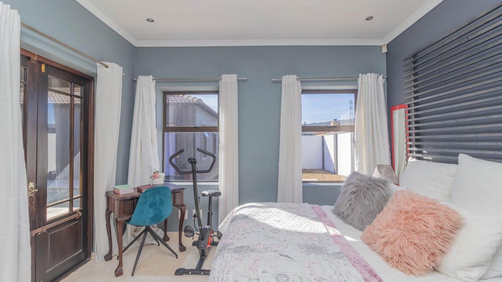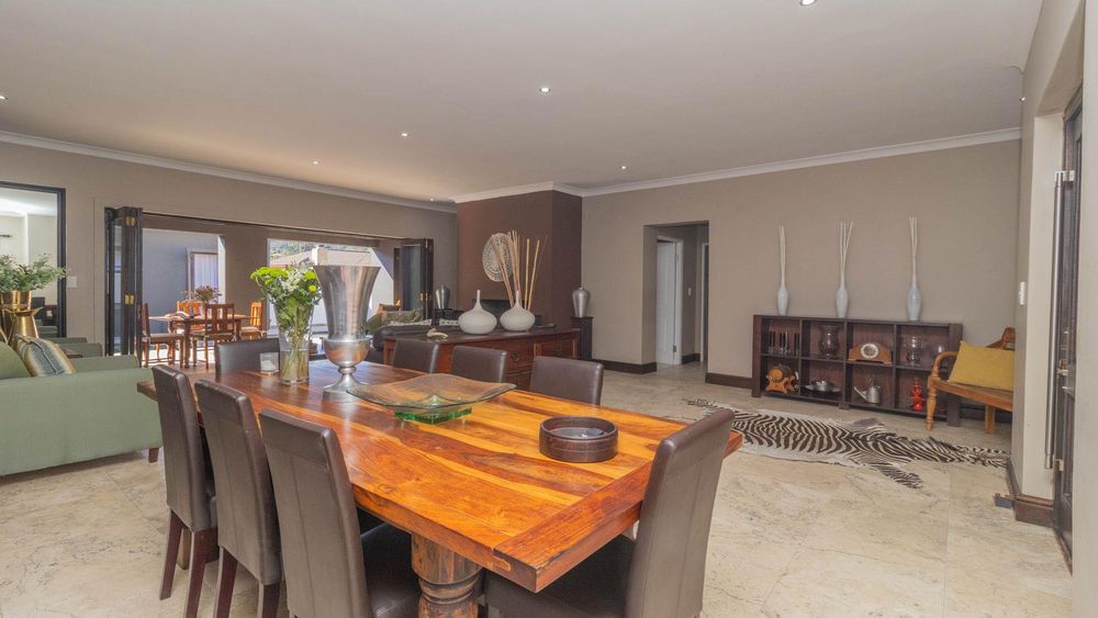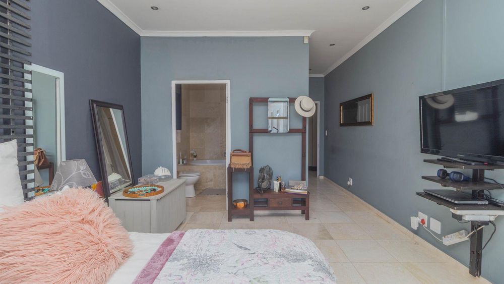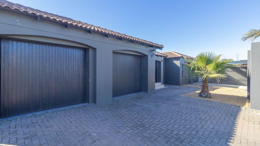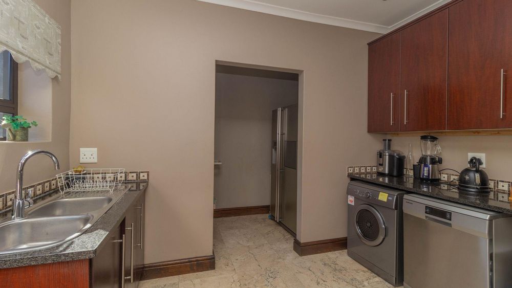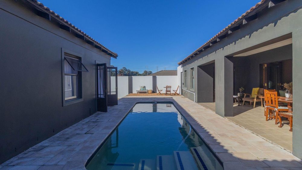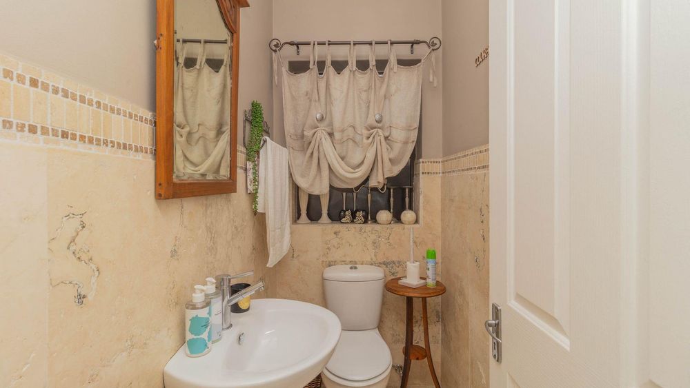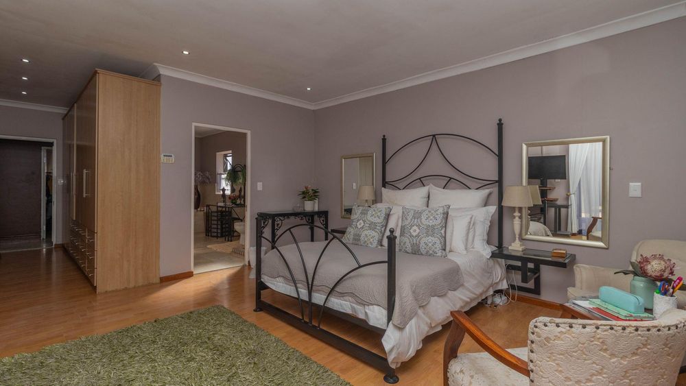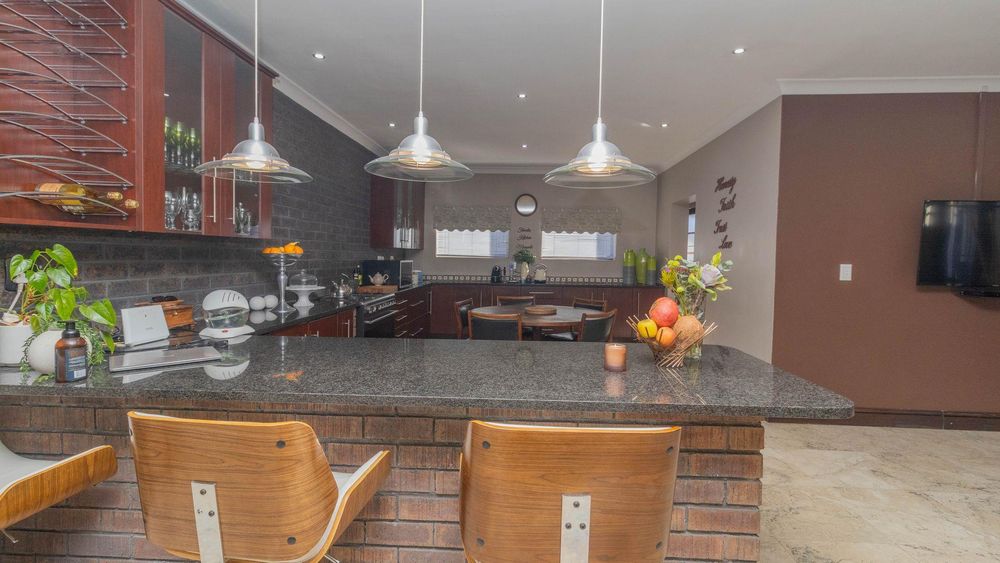 Your guests will appreciate the comfort and privacy of the guest suite, which offers direct access to the patio braai area and pool. The main bedroom serves as a peaceful retreat, featuring direct pool access and a luxurious en suite bathroom complete with his and hers basins, ensuring a serene start to your day.