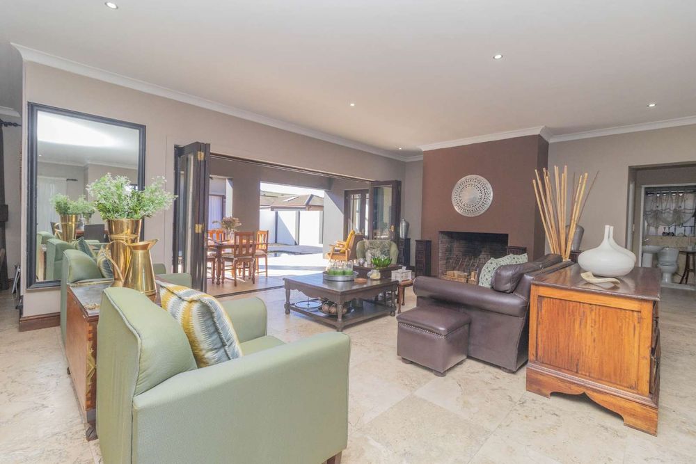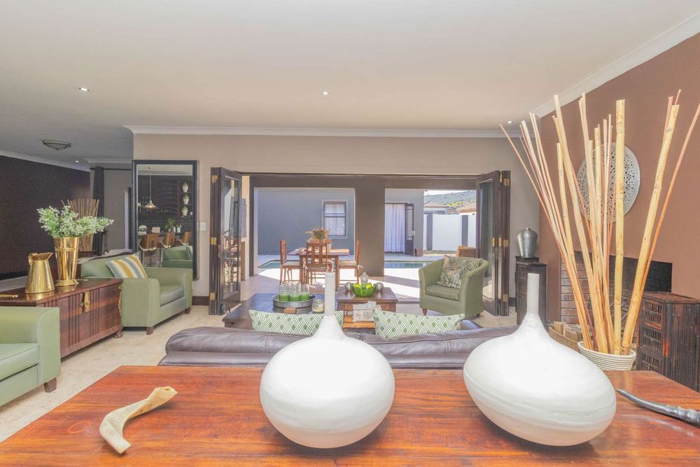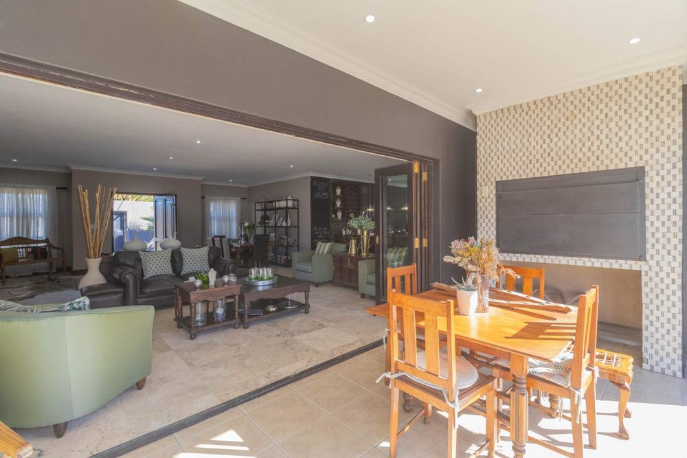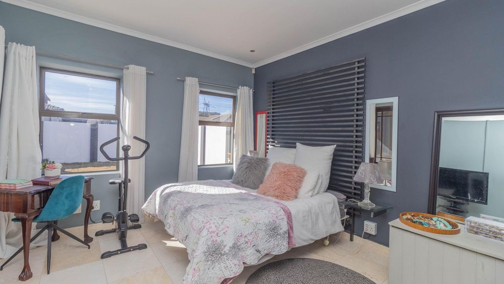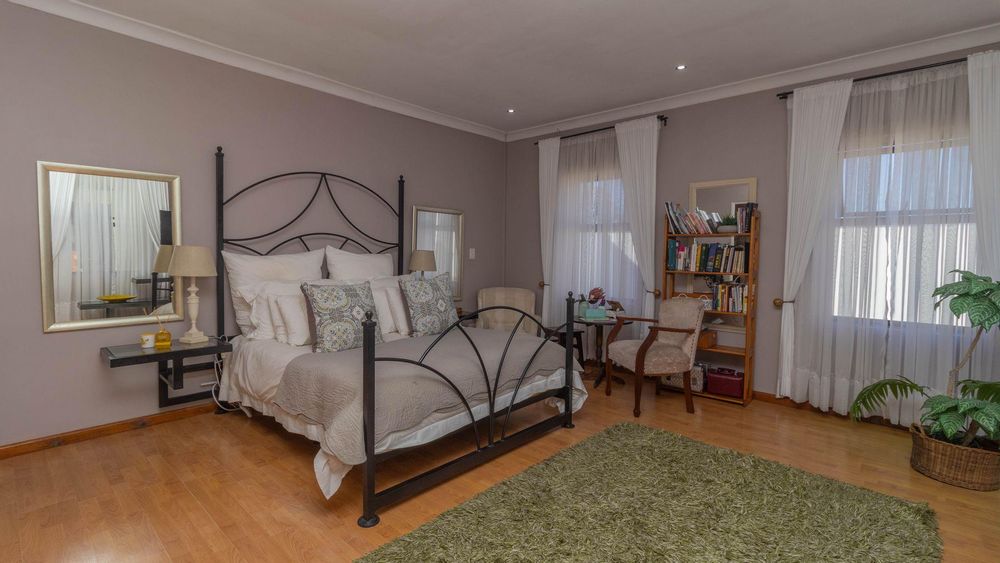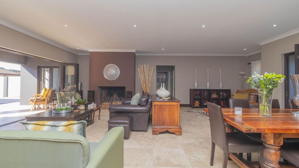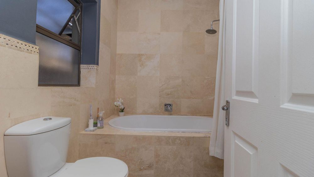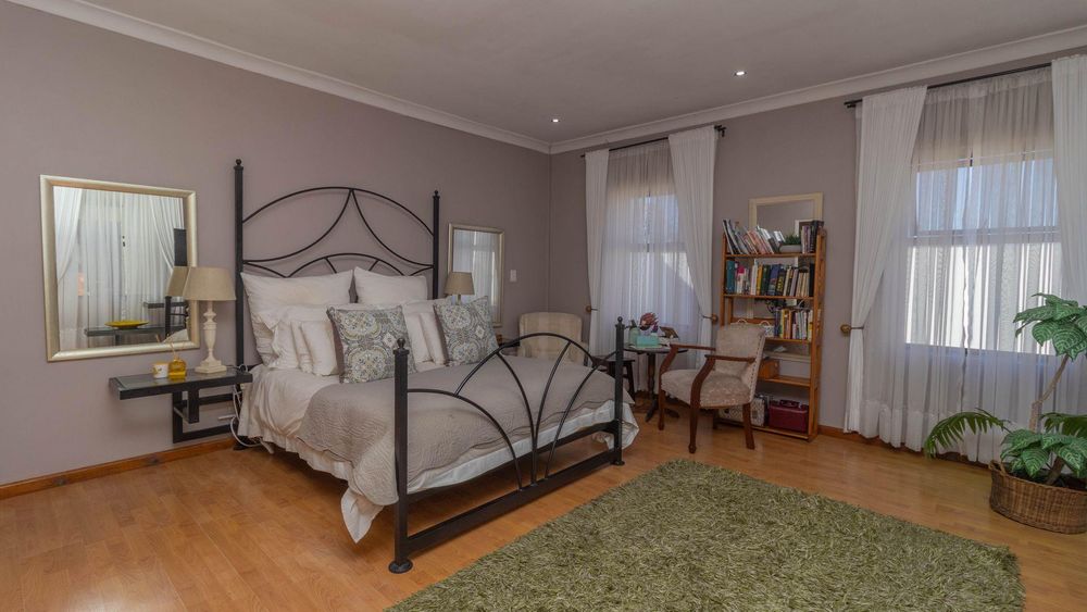 Your guests will appreciate the comfort and privacy of the guest suite, which offers direct access to the patio braai area and pool. The main bedroom serves as a peaceful retreat, featuring direct pool access and a luxurious en suite bathroom complete with his and hers basins, ensuring a serene start to your day.