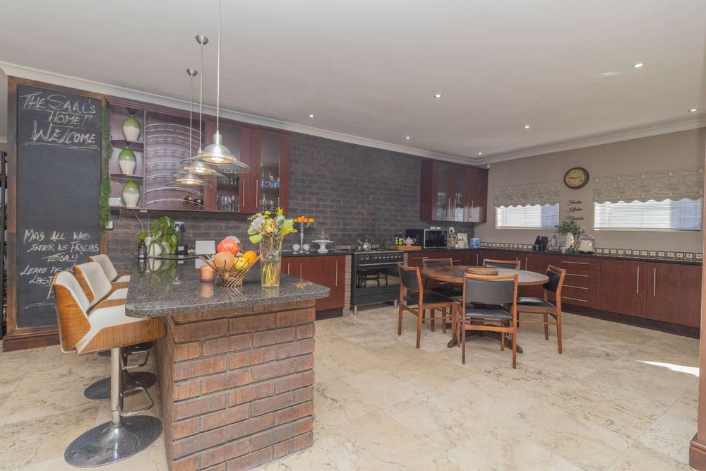 The gourmet kitchen is truly a chef's delight, offering ample workspace and functionality with a separate scullery and extra room for a fridge or chest freezer. Entertain effortlessly as you step out onto the patio, complete with a built-in braai, overlooking the sparkling swimming pool. This outdoor oasis is the perfect setting for summer barbecues and leisurely afternoons with friends and family.