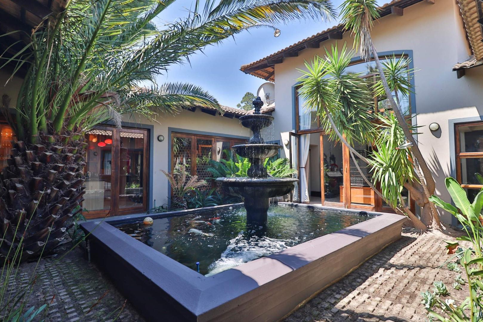 Built around the Koi pond this atrium allows nature to become one with your house. The residence includes four well-appointed bedrooms, each with ceiling fans. The main bedroom is a luxurious retreat with an en-suite bathroom and walk-in cupboards. A spacious spare bedroom offers air conditioning and an additional bathroom, ensuring comfort for all guests.