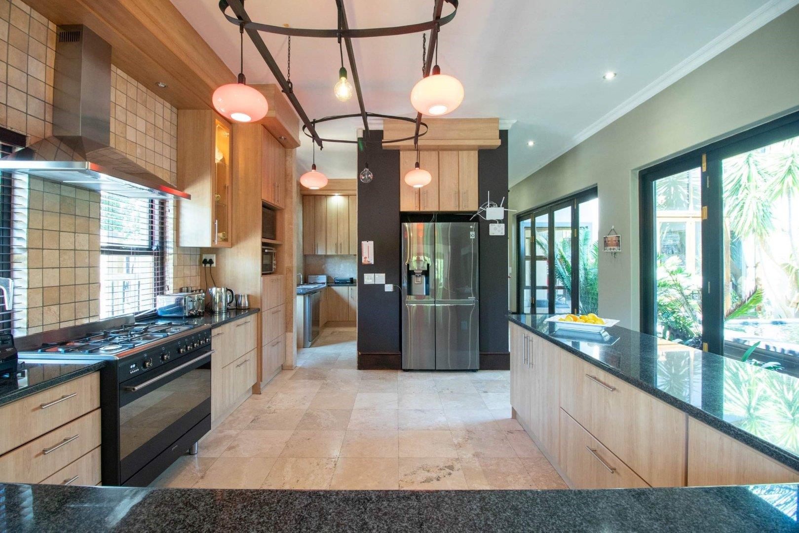 This remarkable property boasts a spacious kitchen equipped with a 6-burner gas hob and an electrical stove, complemented by a separate scullery for additional convenience. Ideal for entertaining, the home features a formal lounge, built-in braai, and a formal dining room, making it an entertainer's dream.