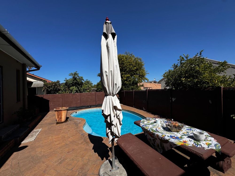 Central to this property is a gourmet kitchen, complete with ample cupboard space and designed for the culinary enthusiast. The kitchen seamlessly flows into the open-plan dining area, creating an ideal space for entertaining guests or enjoying family meals. Adjacent to the dining room, you'll find a cozy TV-room and a braai room, both offering stunning views of the sparkling pool—perfect for those hot summer days.