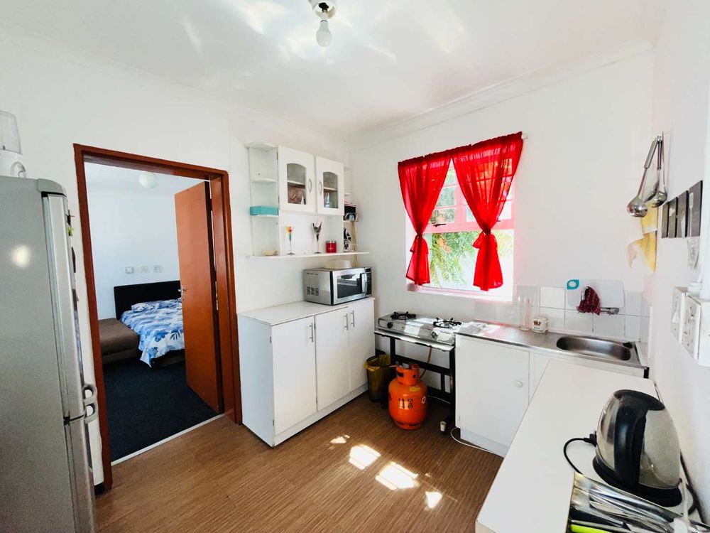 The main house features two generously sized bedrooms, with the master bedroom offering the luxury of an en-suite bathroom complete with a shower. The sunken lounge provides a cozy space for relaxation, while the large kitchen and dining area are perfect for family gatherings and entertaining guests. The main bathroom, equipped with a shower, ensures convenience for all residents. Modern aluminum doors and windows complement the home's aesthetic, and built-in cupboards offer ample storage space. The kitchen features stylish built-in cupboards, sleek countertops, and neat finishes. Fully equipped with a built-in oven, hob, extractor fan, and space for large appliances, it’s designed for both functionality and elegance.