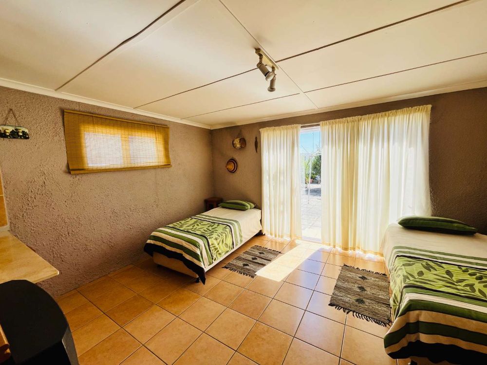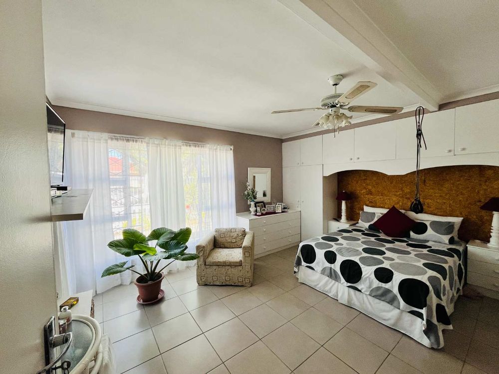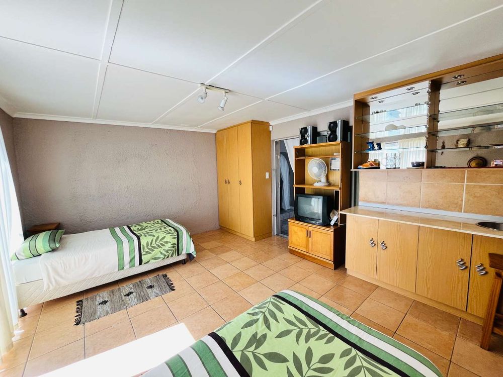 The property also includes two separate entrance flatlets, offering excellent income potential. The first flatlet features one bedroom with built-in cupboards, a kitchen, and a bathroom with both a bath and shower. The second flatlet is a large one-bedroom unit complete with a kitchen, bathroom with shower, and a living room.