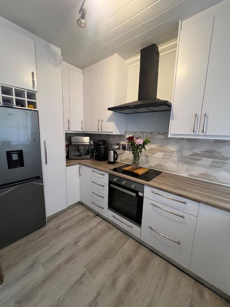 Welcome to this impeccably maintained two-bedroom flat, perfect for those seeking comfort and convenience. Each bedroom is equipped with built-in cupboards, providing ample storage space and keeping your living areas tidy and organized.